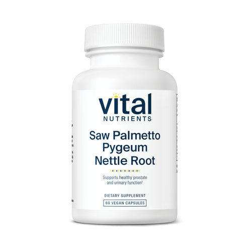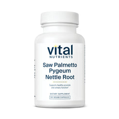 Vital Nutrients Saw Palmetto Pygeum Nettle Root supports prostate gland, healthy urinary function, and helps maintain hormone metabolism in the prostate. Fatty acids contained in Saw Palmetto act as a urinary tonic.