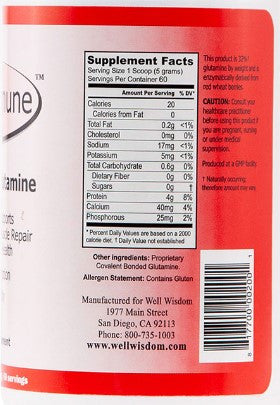 Well Wisdom GlutImmune is a premium L-glutamine supplement designed to support muscle recovery, immune system strength, and optimal gut health. Formulated with a highly bioavailable form of glutamine—an essential amino acid for tissue repair and immune defense—GlutImmune helps strengthen and repair muscles after physical activity, supports healthy intestinal lining, and promotes overall digestive integrity. Ideal for athletes, individuals with compromised immune function, or those seeking digestive support, this clean, high-quality formula aids in maintaining whole-body wellness and performance.