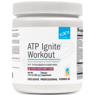 Xymogen ATP Ignite Workout Mixed Berry supports the body during and after exercise, recovery, exercise performance, electrolyte replacement, antioxidant support, and helps reduce muscle fatigue, muscle power, strength, and growth with Peak ATP.