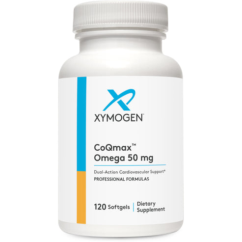 Xymogen CoQmax Omega 50 mg supports cardiovascular system, and helps maintain CoQ10.