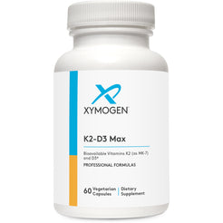 Xymogen K2-D3 Max is designed for individuals requiring a higher level of vitamin K2. This formula combines highly bioavailable and bioactive menaquinone-7 (MK-7) with vitamin D3 to offer complementary benefits for bone and cardiovascular health. Promotes carboxylation of bone proteins.