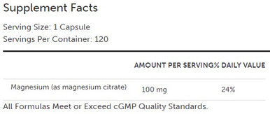 Xymogen Magnesium Citrate Facts:1 capsule contains: