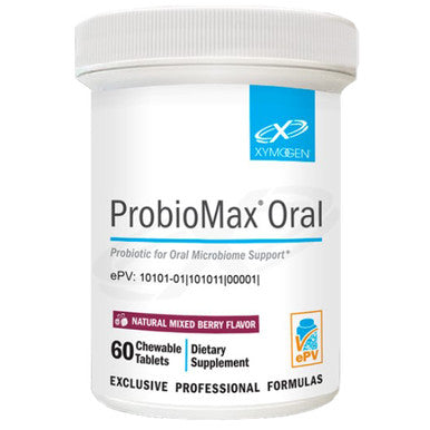 Xymogen ProbioMax Oral 60 chewable tablets Mixed Berry Flavor is designed for a healthy smile. ProbioMax Oral naturally colonizes the mouth, supports oral health, including teeth and gums, making it an excellent supplement to add to your daily dental care.