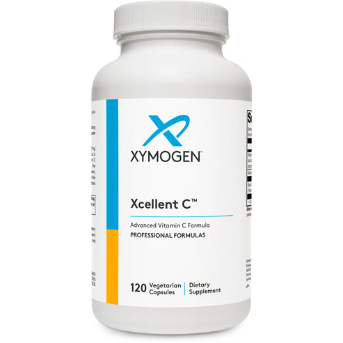 Xymogen Xcellent C supports immune health, antioxidants, collagen production, synthesis of neurotransmitters and carnitine, stomach upset, and helps enhance nutrient bioavailability.