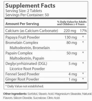Zahler AfterMeals Facts:2 Tablets contain: