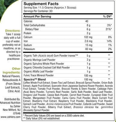 Advanced Nutrition by Zahler Core Greens Powder Spearmint FlavorFacts: 11.5 grams (approx. 1 scoop) contains:
