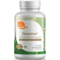 Zahler Diabetter diabetes and glucose control. Includes Cinnamon, Fenugreek, Bitter Melon Fruit Powder, Chromium and more, all of which are formulated to work synergistically to regulate blood sugar levels, help control the rate at which sugar enters the bloodstream, improve glucose metabolism and promote a healthy circulatory system. For individuals who have high glucose levels in their bodies.Recommended Use: Take 6 capsules daily, preferably divided between two meals, or as directed by a healthcare professional.