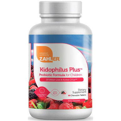 Zahler Kidophilus Plus a highly potent blend of four distinct probiotic strains, including the all-important L. Acidophilus (Lactobacillus acidophilus). Kidophilus Plus works quickly to help suppress the growth of potentially harmful bacteria, improve immune function and enhance the protective barrier of the digestive tract. Kidophilus Plus is berry flavored, which makes it delicious tasting and appealing for kids. A probiotic supplement helps promote the growth of beneficial bacteria (microflora) in our gut. When these organisms are balanced and healthy, they support the normal functioning of numerous bodily processes. Certain illnesses, medications, lifestyles, or even stressors can cause an imbalance of healthy microflora in our gut. If this occurs, then our immune system, digestion and more could be negatively affected. The benefits of L. Acidophilus are numerous, such as the recolonization of the intestines and immune function improvement. L. Acidophilus is particularly beneficial after antibiotic use, as antibiotics kill off all bacteria indiscriminately. This formula helps support better digestion and a healthy immune system by halting the growth of disease-causing bacteria. Kidophilus may also reduce bad breath and flatulence, support healthy digestion, help relieve temporary constipation and support healthy intestinal flora.