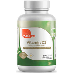 Zahler Vitamin D3 3,000 IU a crucial nutrient for overall health, specifically maintaining strong muscles, bones, teeth and immune system. However, millions of individuals are deficient in this life-sustaining vitamin. In addition to supporting bone health, research shows that D3 deficiency is linked to a host of conditions that present serious health risks. Vitamin D3 provides all the benefits of vitamin D without the risk of unprotected exposure to UVB rays. Officially known as cholecalciferol, Vitamin D's nickname, the sunshine vitamin, offers insight into one of the ways humans can get the vitamin. Aside from exposure to sunlight, you can also obtain Vitamin D3 by eating certain foods, such as fish, eggs, and milk fortified with the vitamin. Many people do not have adequate levels of Vitamin D3 in their systems and therefore require supplementation.Recommended Use: Take 1 softgel daily with meals or as directed by a healthcare professional.